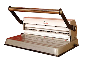 THIS IS THE MOST INNOVATIVE INDIGENOUSLY DESIGNED AND DEVELOPED INHOUSE BINDING SOLUTIONS. THIS FORM OF BINDING ELIMINATES THE NECESSITY TO STOCK VARIOUS SIZES OF BINDING ELEMENTS, SINCE ONE STANDARD SIZE OF BINDING ELEMENT FITS IN ALL SIZE OF DOCUMENTS. THIS IS THE SIMPLEST FORM OF BINDING IN WHICH LOOSE SHEETS CAN BE CONVERTED IN TO IMPRESSIVELY BOND DOCUMENTS JUST IN THREE STEPS